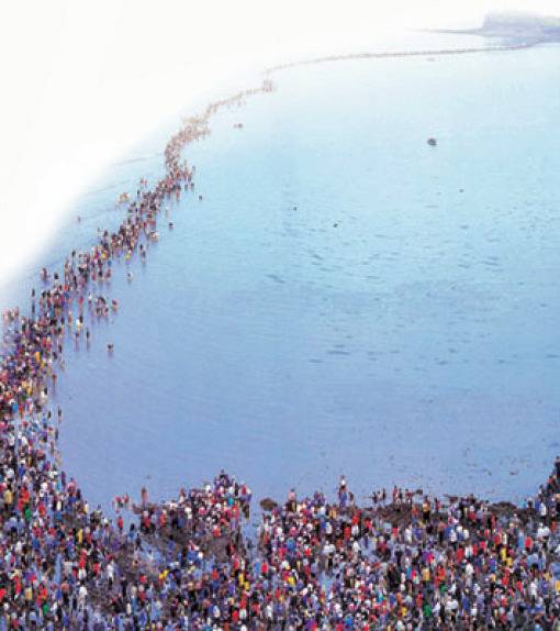 A French ambassador came to South Korea in 1975 and witnessed a real miracle during his visit to Jindo Island. He wrote about it in a French newspaper, and since then the Moses Miracle became well-known all over the world.